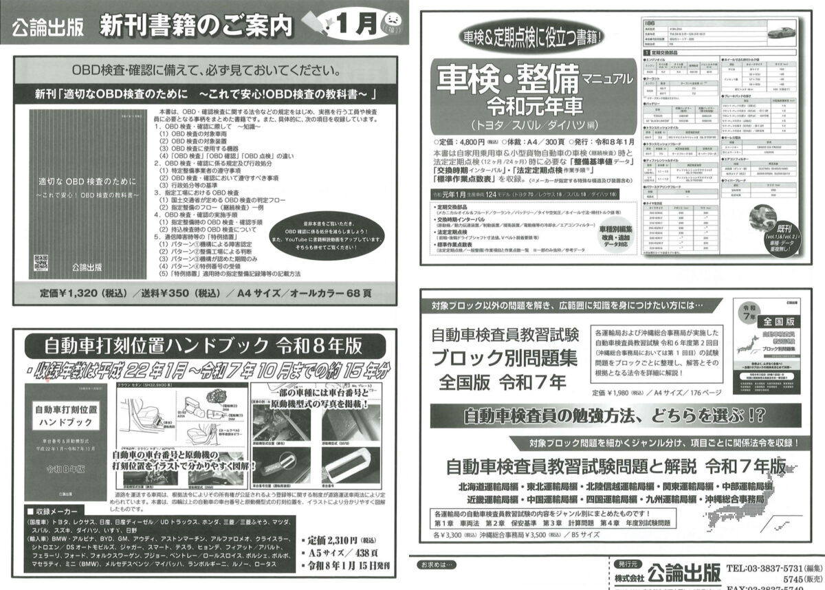 公論出版 1月新刊書籍のご案内 | HASCA(兵庫県自動車整備商工組合)